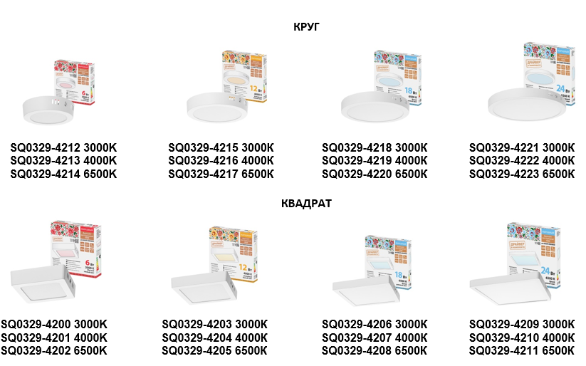 Расширение ассортимента и поступление на склад Новинок Светильники LED даунлайты СПО накладные алюминий Народные